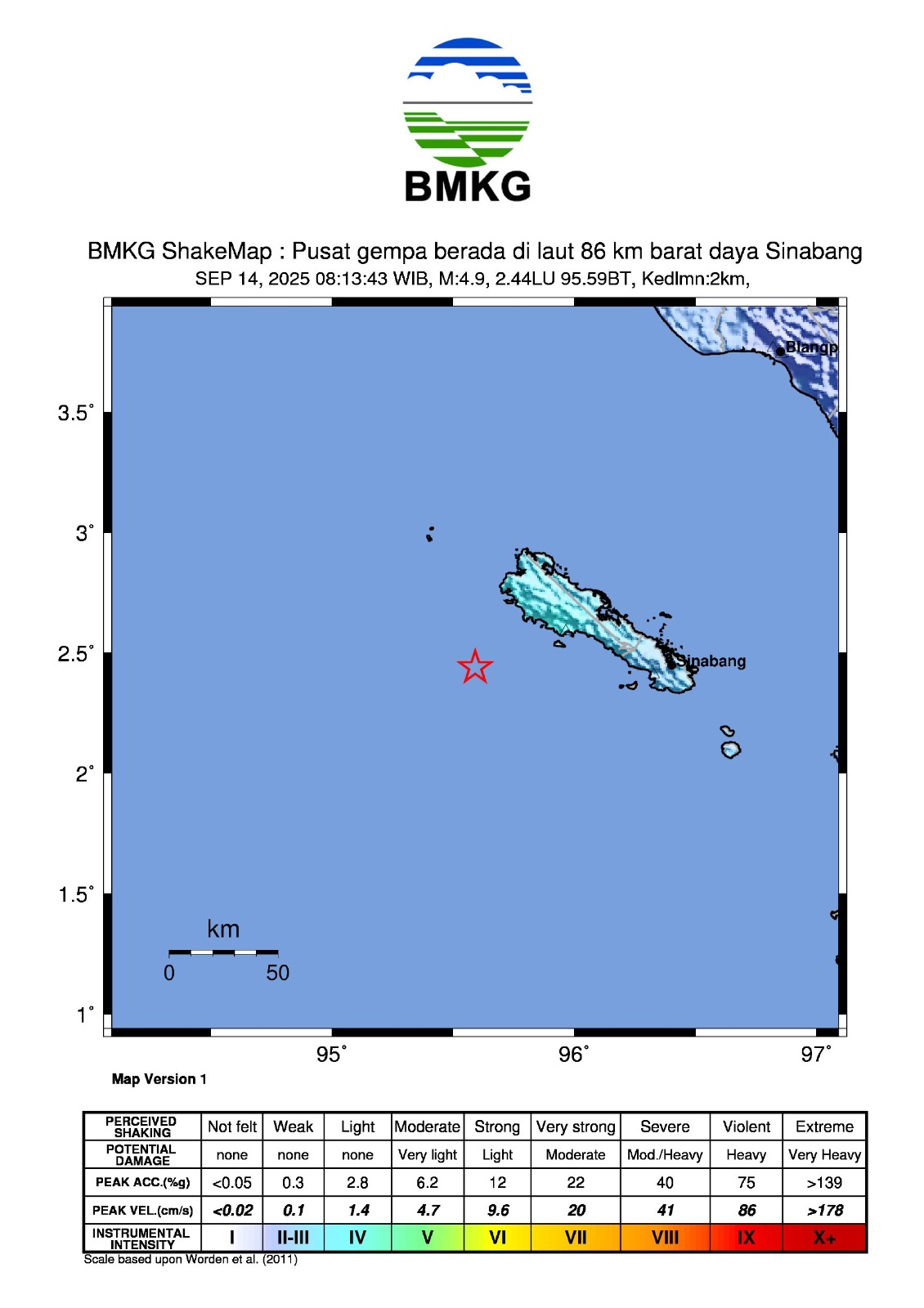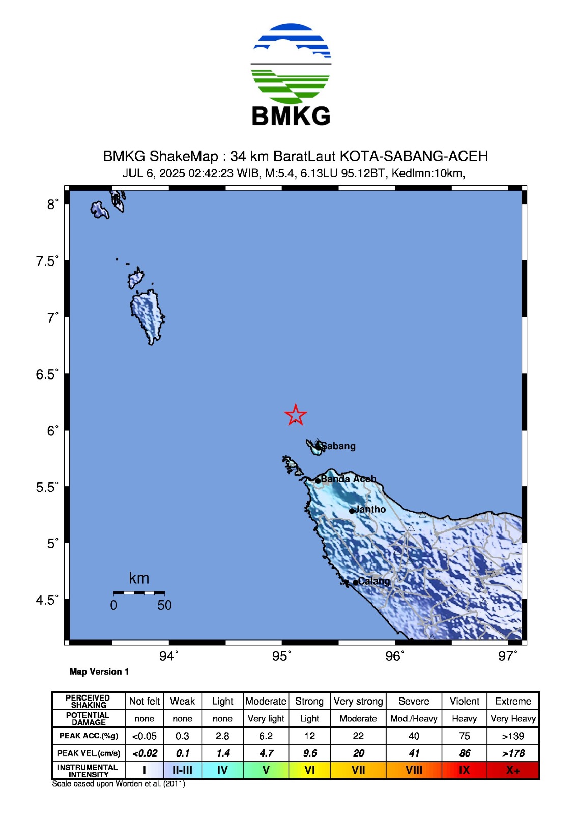 GEMPABUMI TEKTONIK M5,4 DI SABANG, ACEH, TIDAK BERPOTENSI TSUNAMI