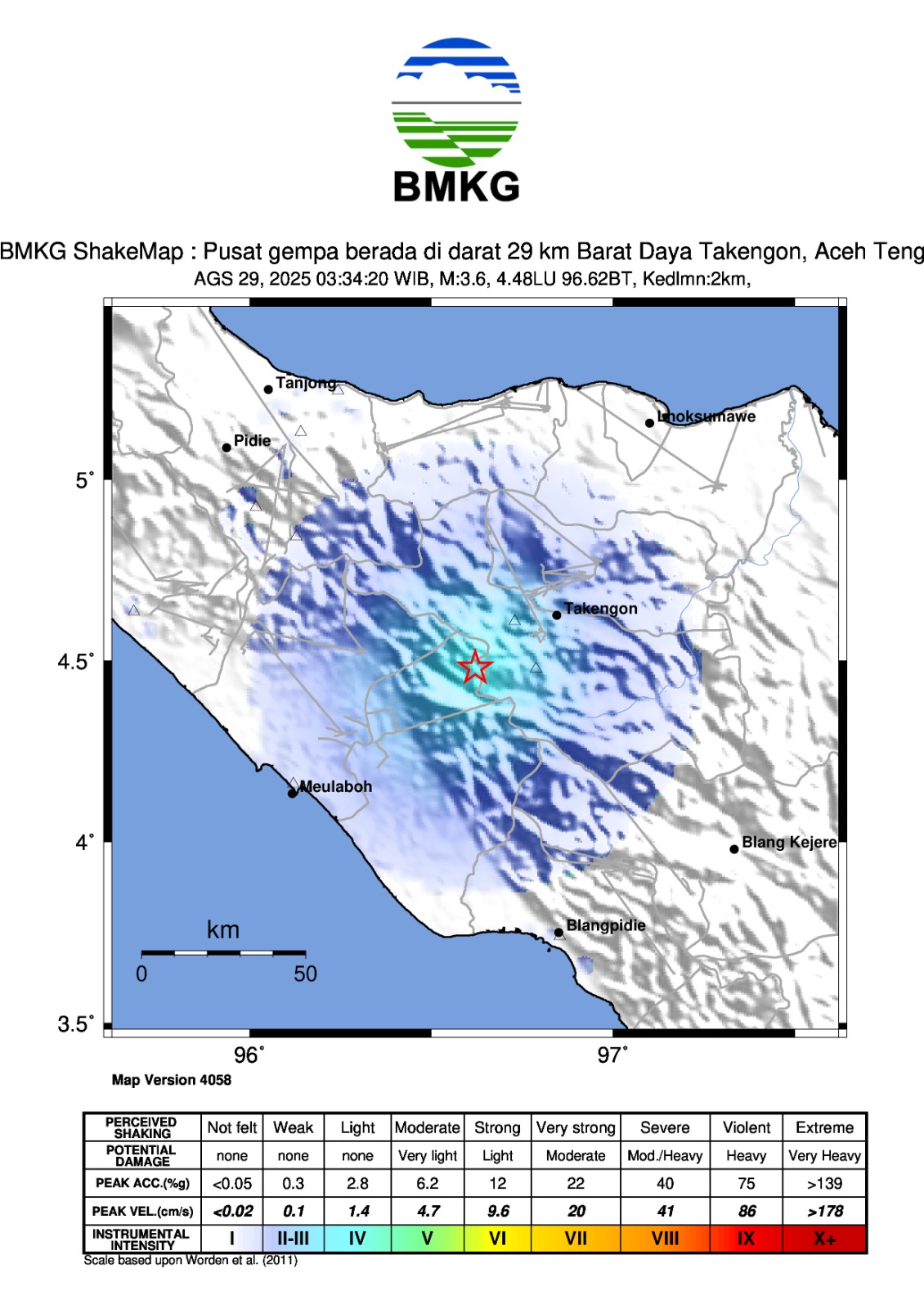 GEMPABUMI TEKTONIK M3.6 DIRASAKAN DI KABUPATEN ACEH TENGAH