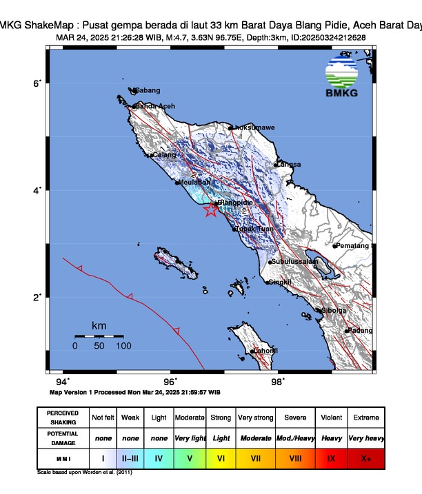 Kejadian dan Parameter Gempabumi: Hari Senin, 24 Maret 2025 pukul 21:26:28 WIB, Kabupaten Aceh Barat Daya dan sekitarnya diguncang gempabumi tektonik. Hasil analisis BMKG menunjukkan bahwa gempabumi ini berkekuatan M4.7. Episenter gempabumi terletak... selengkapnya