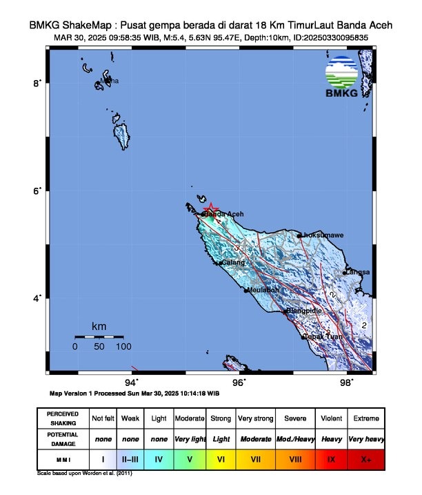 GEMPABUMI TEKTONIK M5,4 DI LAUT ANDAMAN, ACEH BESAR, ACEH, TIDAK BERPOTENSI TSUNAMI
