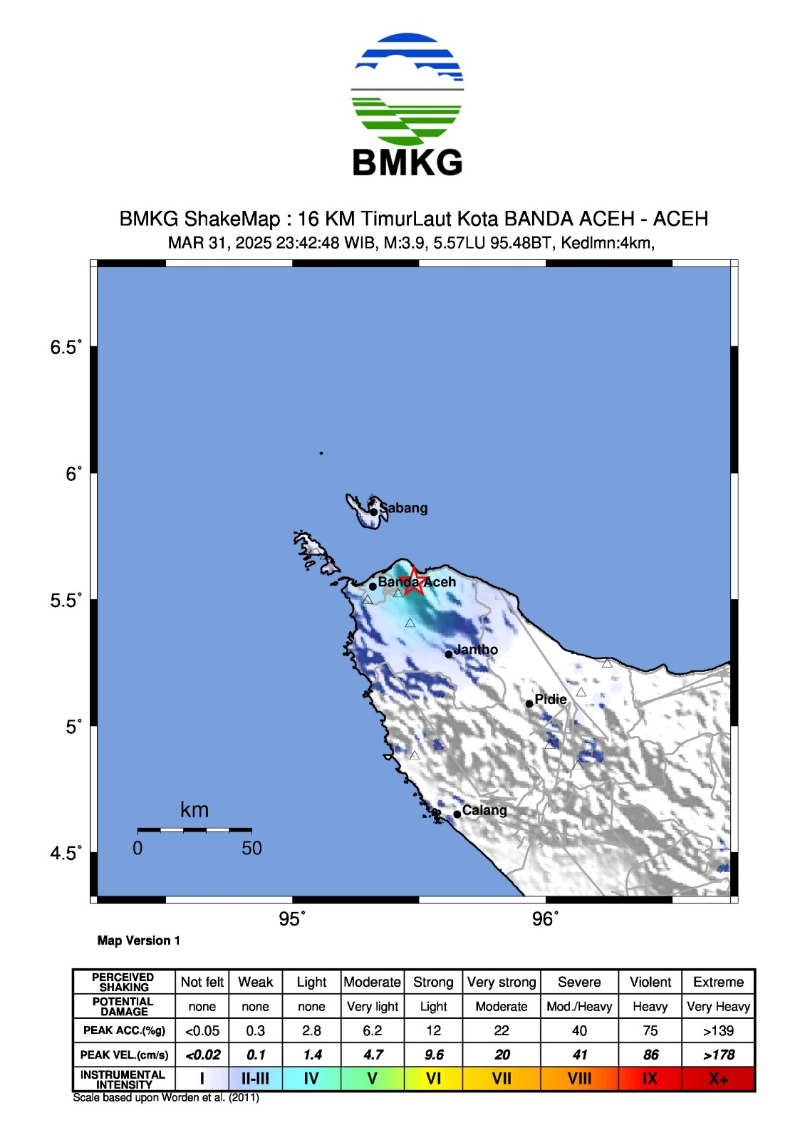 GEMPABUMI TEKTONIK M3.9 DIRASAKAN DI KABUPATEN ACEH BESAR