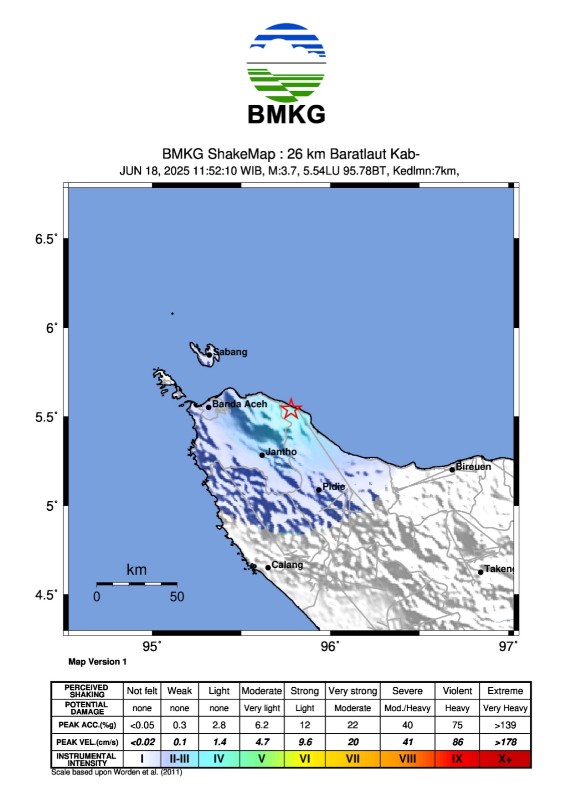 GEMPABUMI TEKTONIK M3.7 DIRASAKAN DI KABUPATEN ACEH BESAR