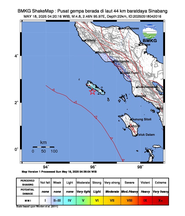 GEMPABUMI TEKTONIK M4.8 DIRASAKAN DI KABUPATEN SIMEULUE