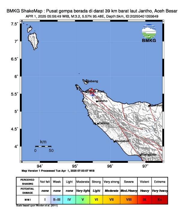 GEMPABUMI TEKTONIK M3.2 DIRASAKAN DI KABUPATEN ACEH BESAR